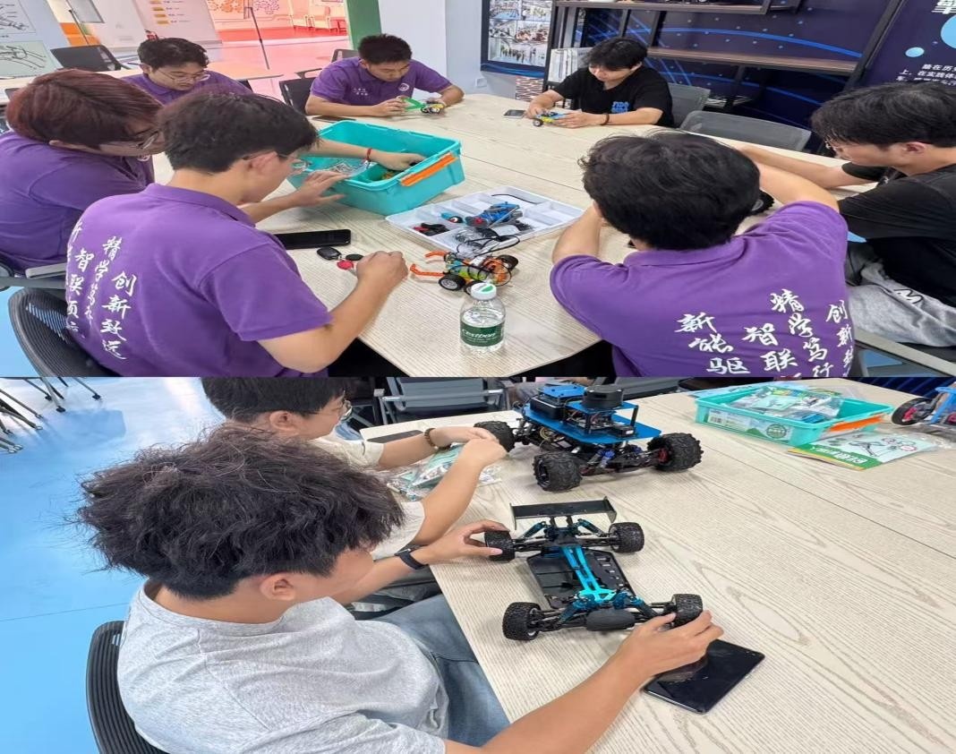 活动现场,三电实验室面向全校开放,新能源汽车电池、电机等核心部件一一陈列,志愿者现场讲解,将专业知识转化为通俗易懂的语言。借助可视化平台,动力系统运行原理以动态模拟的形式直观呈现,学生们驻足观看。“小手拼大车” 模型组装体验区成为人气焦点,在志愿者的耐心指导下,同学们拼接太阳能小车,从零件组装到成功驱动,每一步都充满挑战与惊喜。