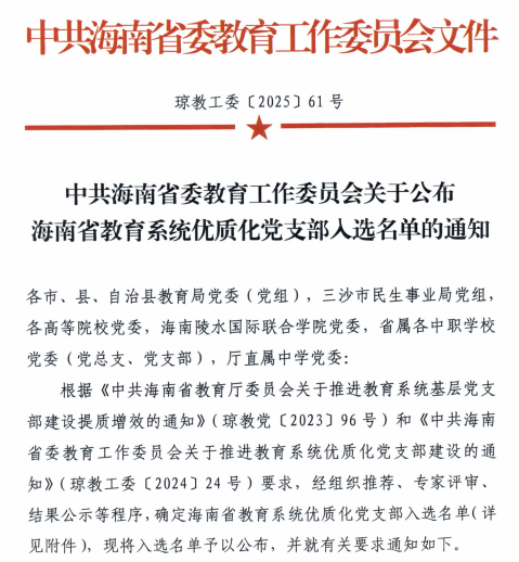 近日,汽车学院学生党支部凭借卓越表现脱颖而出,成功入选海南省教育系统优质化党支部名单,成为全省高校党建工作的优秀典范。