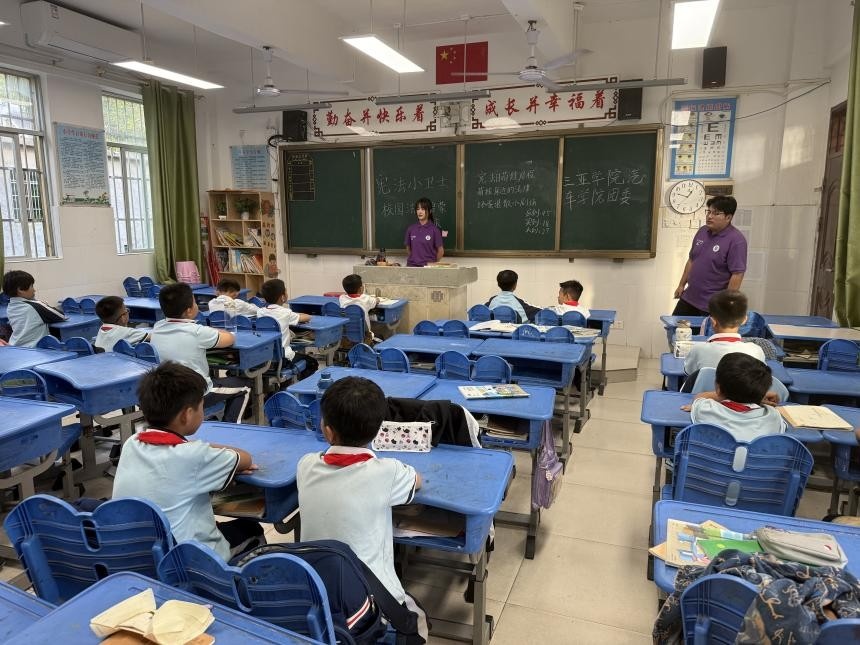 为增强青少年法治观念,营造文明守法的校园氛围,2025年12月3日,三亚学院新能源与智能网联汽车学院团委带领志愿者同学走进三亚市临春小学,面向四年级学生开展了主题为“法治伴我行”的普法宣讲活动。